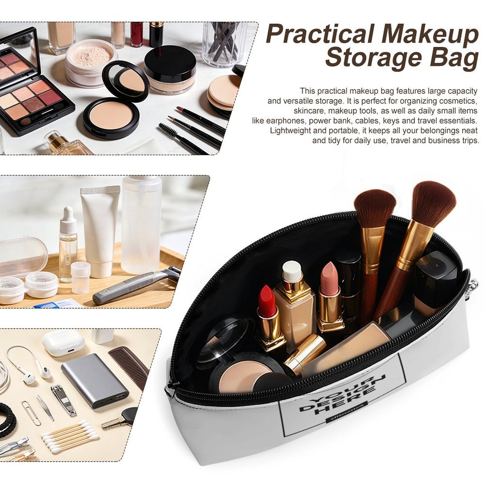Perfect as a travel makeup bag for students, office workers, and travelers. Ideal for organizing cosmetics and daily essentials on the go.